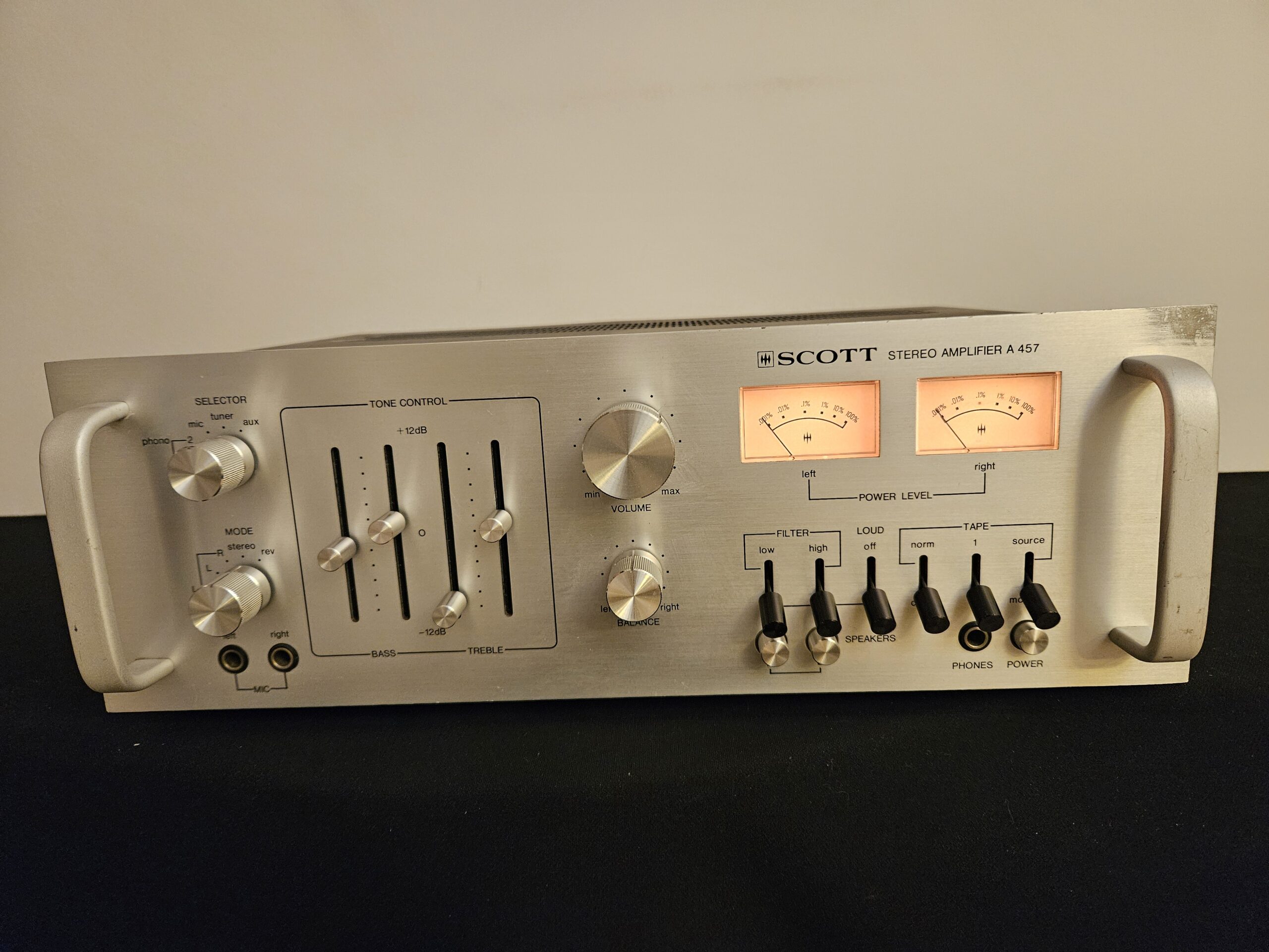 Scott A-457 (1977) Puissance de sortie : 60 watts par canal sous 8Ω Réponse en fréquence : 15Hz à 35kHz...
